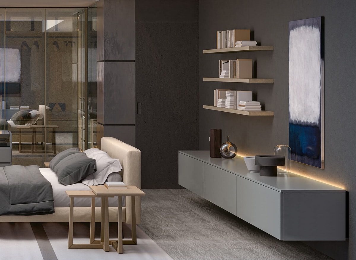 Climb stellt ein äußerst vielseitiges modulares System dar, das außergewöhnliche Gestaltungsfreiheit bietet. Basierend auf Containerelementen wird das System durch Zubehör und Regale ergänzt und ermöglicht so hochgradig anpassbare Konfigurationen. Die mit 45°-Verbindungen gefertigten und mit innovativen Press-to-Open-Mechanismen ausgestatteten Module sind das Ergebnis eines zeitgemäßen und anspruchsvollen Designs. Diese Lösung zeichnet sich dadurch aus, dass sie den Einrichtungsbedürfnissen moderner Häuser auf originelle Weise gerecht wird und Lösungen für Räume bietet, die von Eingängen und Wohnbereichen bis hin zu Heimbüros und Schlafzimmern reichen. Climb passt sich jedem Kontext an und bietet die Möglichkeit, offene Fächer, Vitrinen, Schubladen, Flügel- oder Klapptüren zu verwenden. Die raffinierten Oberflächen und die technologisch fortschrittliche Handwerkskunst sind das Markenzeichen aller Elemente dieser Serie.