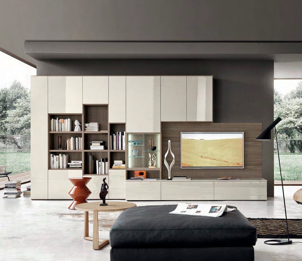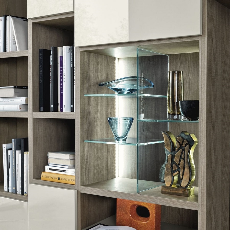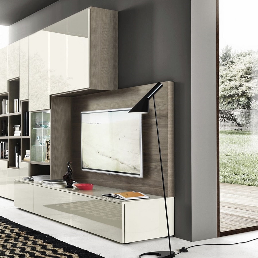 Struktur mit 30 mm dicken Seitenwänden und Regalen, Fernsehpaneel mit Klappsystem und strukturiertem Rücken aus mittlerer Ulme