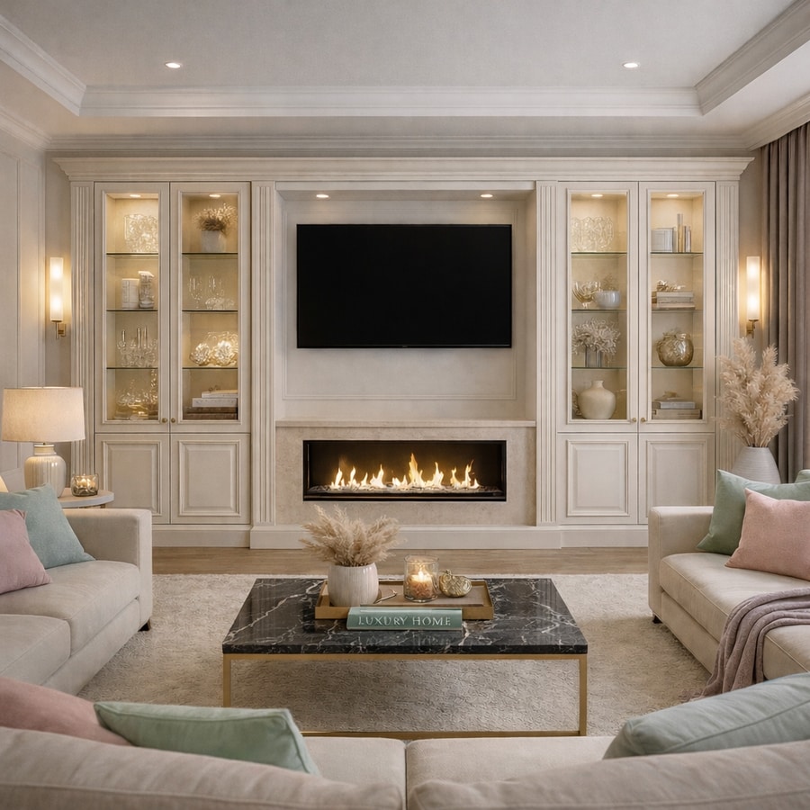 Maßgeschneiderte Wandmöbel für modernes Wohnzimmer