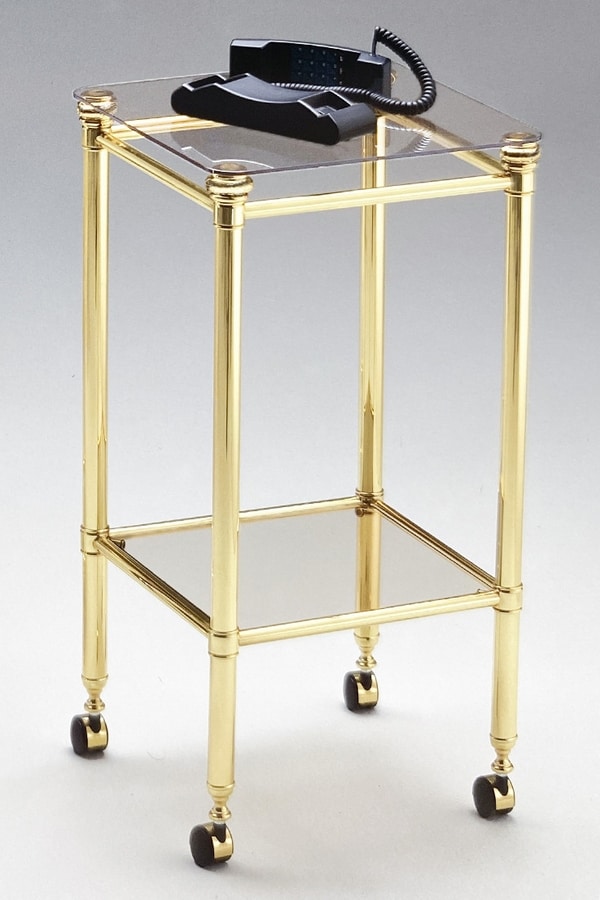Telefonhalter Warenkorb mit poliertem Messing Struktur und Glasplatte.
