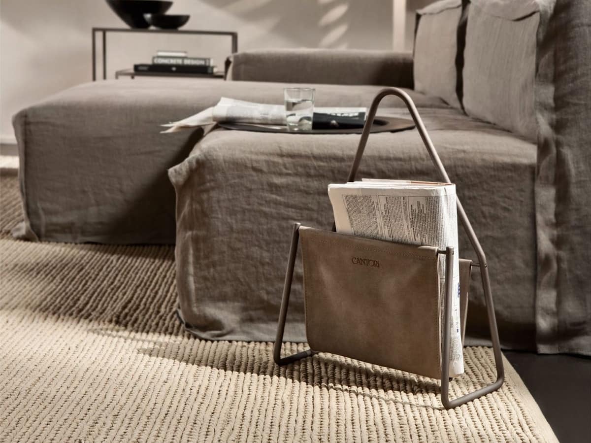 In Metall und Leder Zeitschriftenständer, für Wohnräume