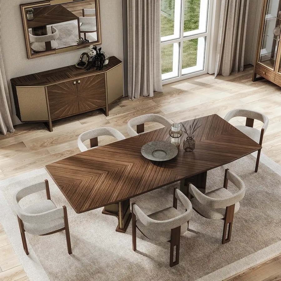 Mit seinen klaren Linien und der warmen Textur des Nussbaumholzes Canaletto wird dieser Esstisch zum Mittelpunkt jeder Zusammenkunft und empfängt Freunde und Familie in einer Atmosphäre raffinierter Geselligkeit.