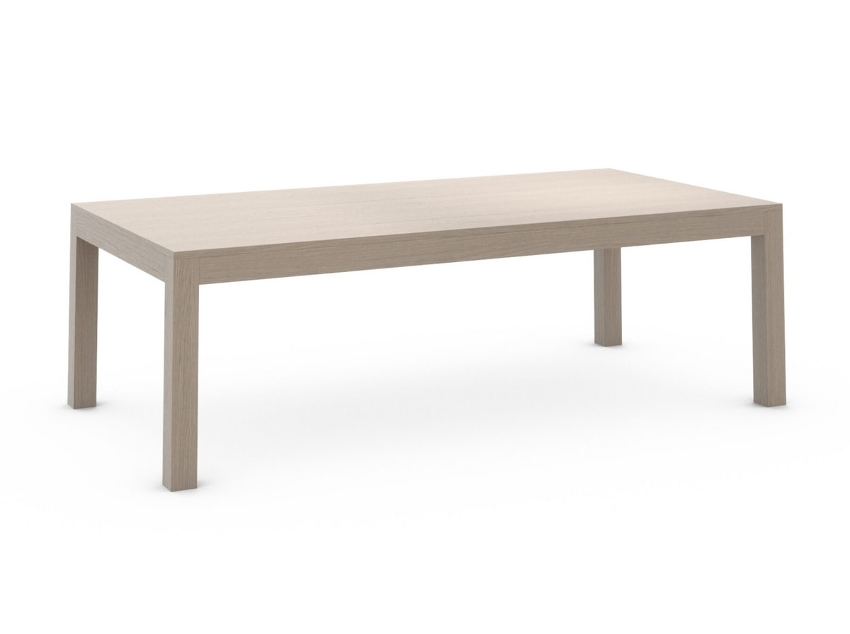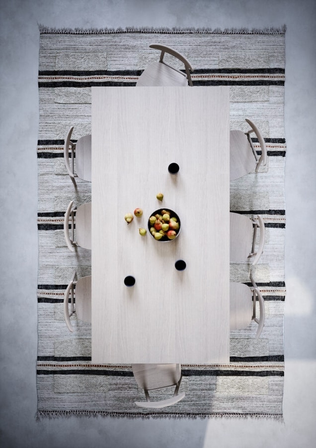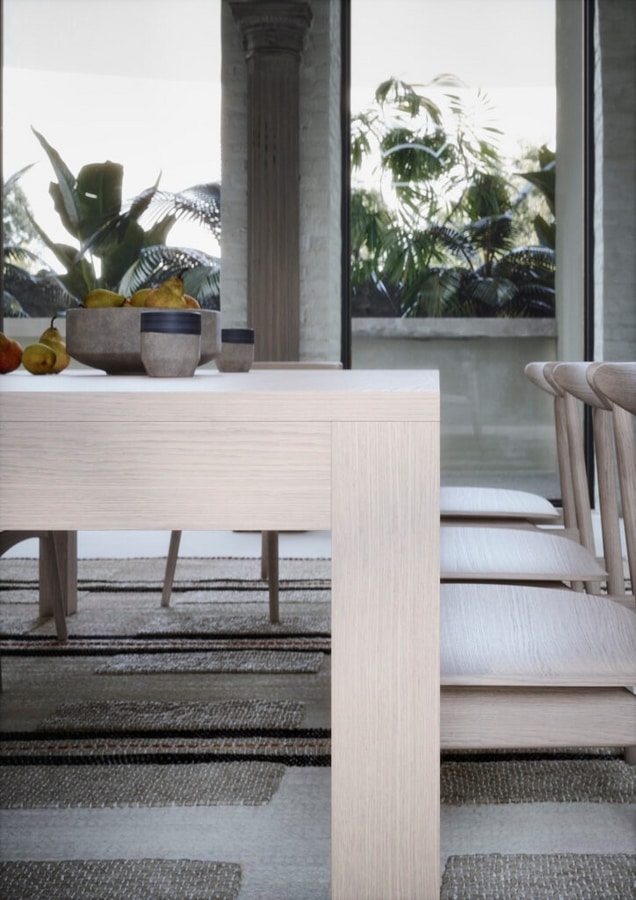 Seine massive Eichenstruktur macht Bridge zu einem massiven, robusten Tisch. Die Oberseite kann mit verschiedenen Ausführungen und Materialien individuell gestaltet werden.