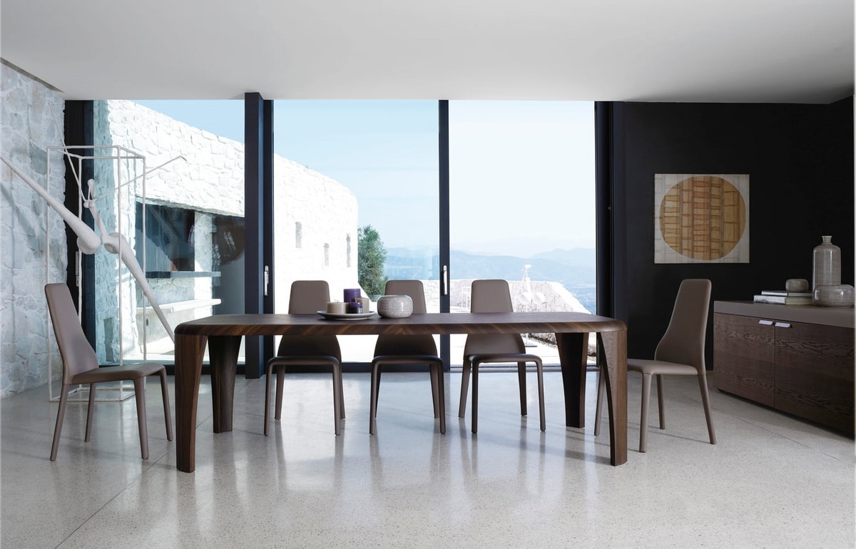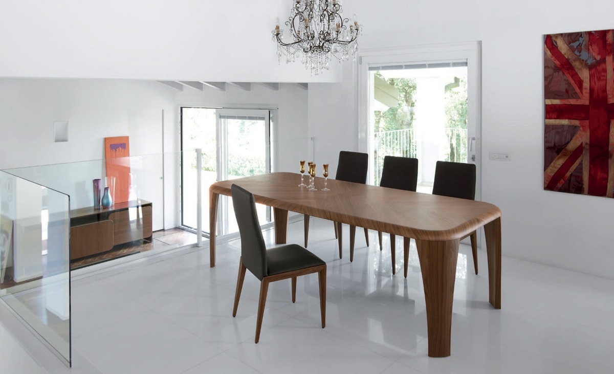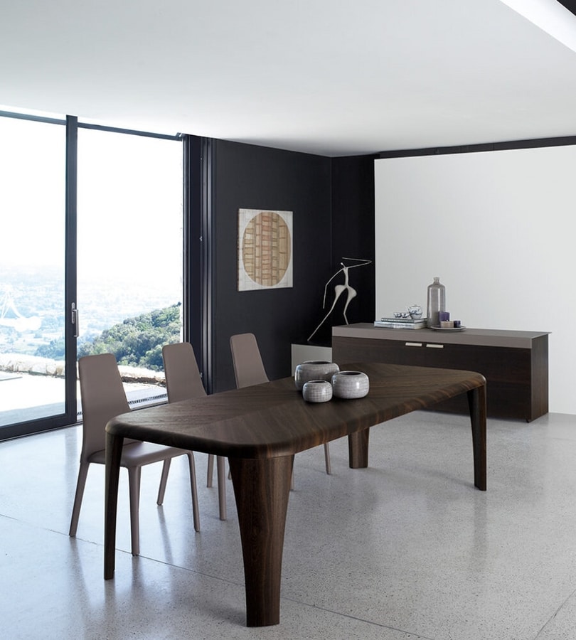 Igor, wenn Design zum architektonischen Gedanken wird . Ein Tisch aus Holz, das aus einem freien Muster stammt, bei dem die Linien sanft geschwungen und ohne Kanten sind und das Holz von erfahrenen Händen nach den Prinzipien der Erfahrung und der qualifiziertesten Schreinerkunst geformt wird.
