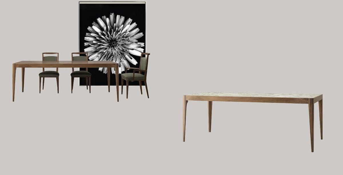Rechteckiger Holztisch, erhältlich in fester Ausführung oder mit ausziehbarer Platte.