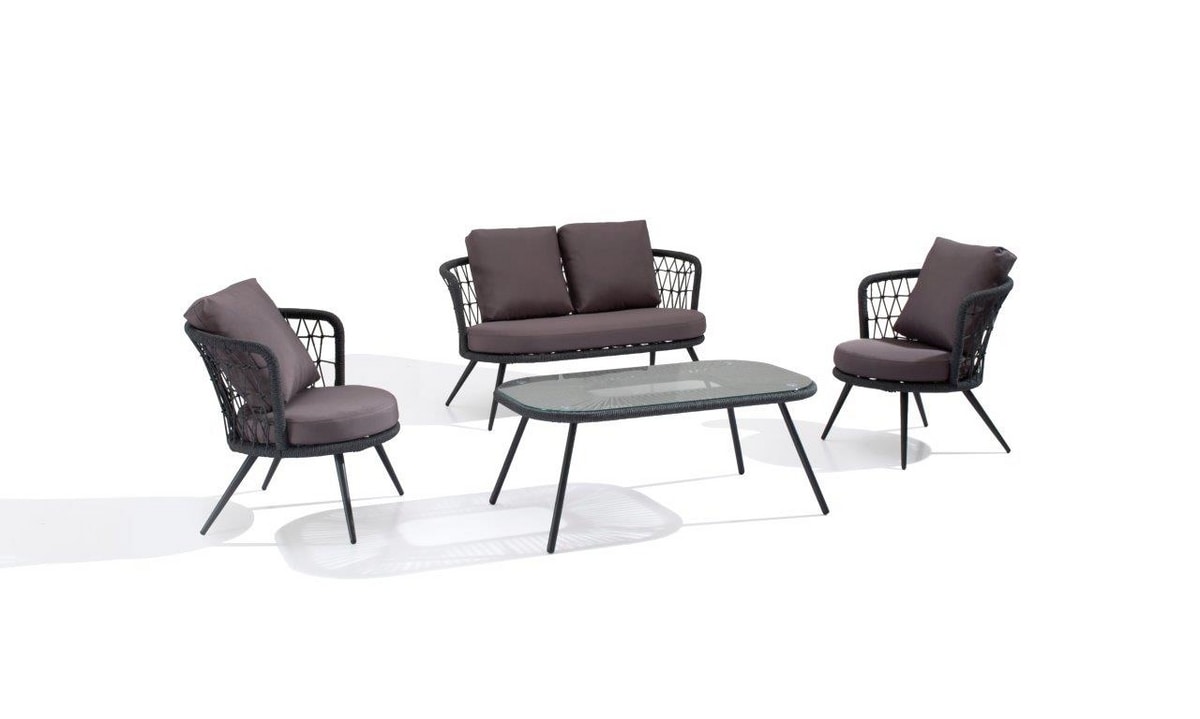 Outdoor -Set mit Sofa, Sesseln und Couchtisch