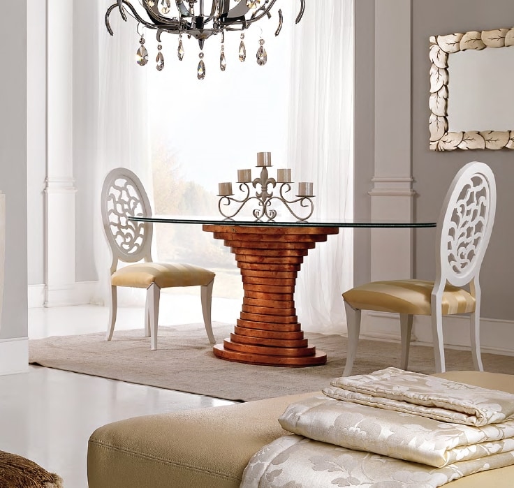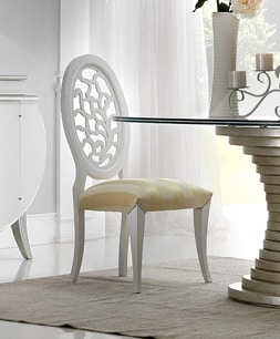 Lackierter Esstuhl mit ovaler Rückenlehne