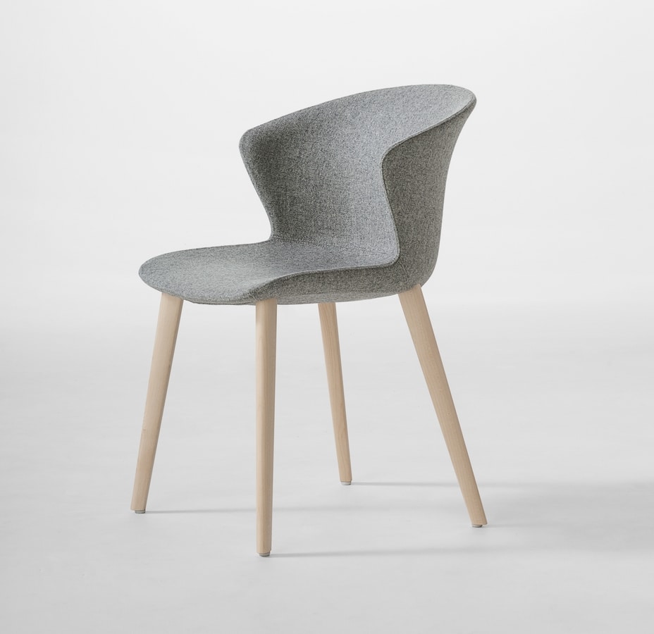 Stuhl mit umhüllender Schale, Holzbeine