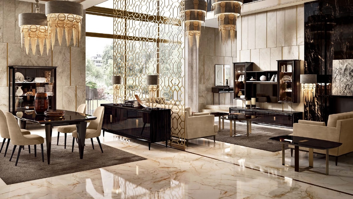 Miracle zeichnet sich durch Design, feine Verarbeitung, Material- und Farbkombinationen aus: Ebenholz, auch in lackierter Ausführung erhältlich, Nubuk-Bezüge, Marmor und bronzierte Messingoberflächen für ein überraschendes und unnachahmliches Gesamtbild.