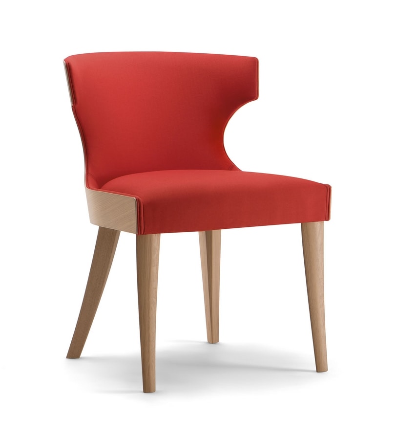 Die geschwungene Sperrholzschale mit ihrem ursprünglichen Design kennzeichnet eine Vielzahl von Sitzen der Xie-Kollektion. Dieser gepolsterte Seitenstuhl ist unverzichtbar und einfach in seinen Linien und eine perfekte Lösung für den Vertragsgebrauch. Die leichte Holzschale macht den Sitz bequem und gemütlich. Die Basis besteht aus massivem Holz und ist in verschiedenen Farben erhältlich.