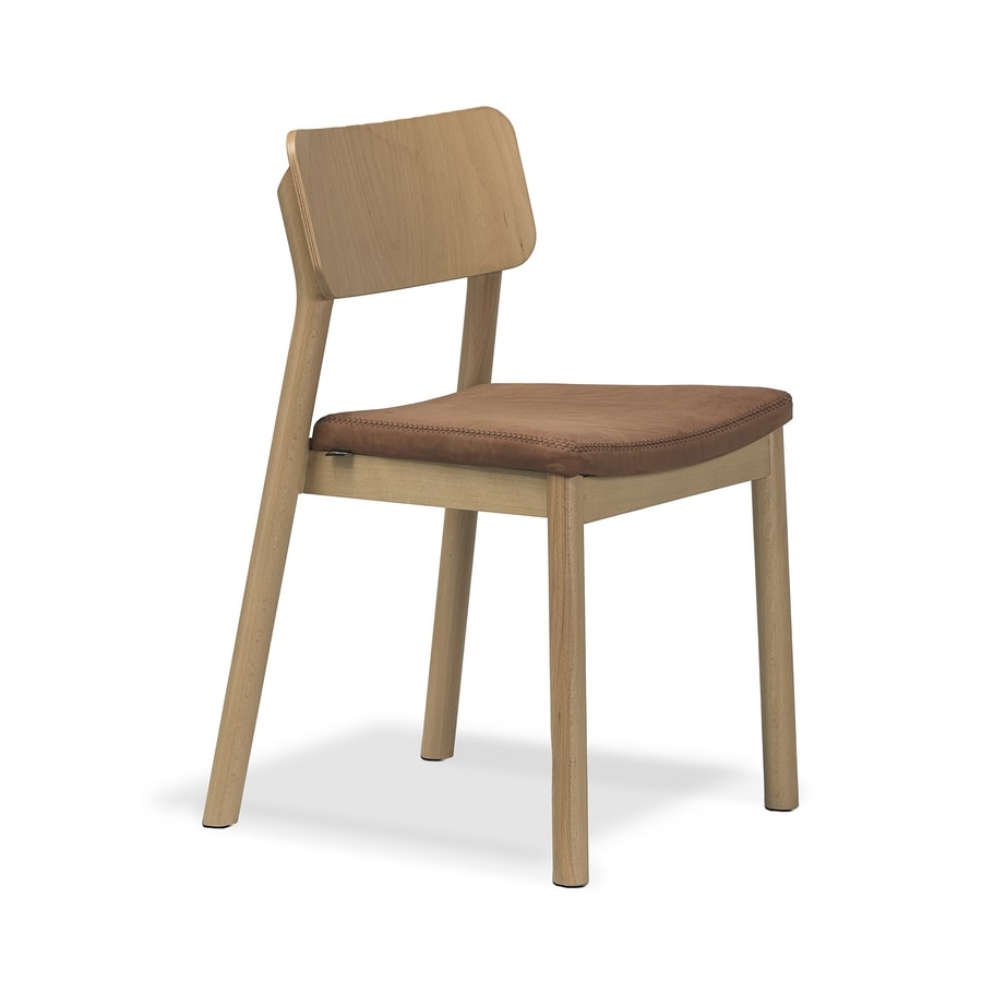 Ein Stuhl mit minimalistischem, leichtem Design, der durch seine Robustheit überrascht. Die geschwungene Holzrückenlehne mit klaren Linien und handwerklichen Details vereint zusammen mit dem Holz- oder Polstersitz Komfort und Haltbarkeit. Er ist kompakt und stapelbar und wurde für Restaurants, Bistros und Objektbereiche entwickelt, die einen praktischen, widerstandsfähigen und vielseitigen Sitz suchen, der jeder Umgebung Charakter verleiht.