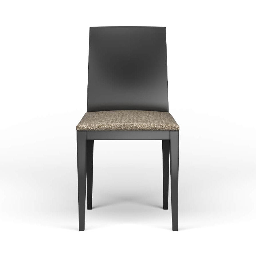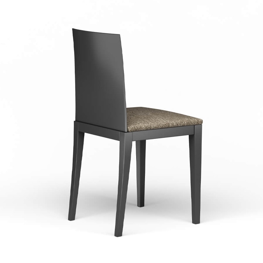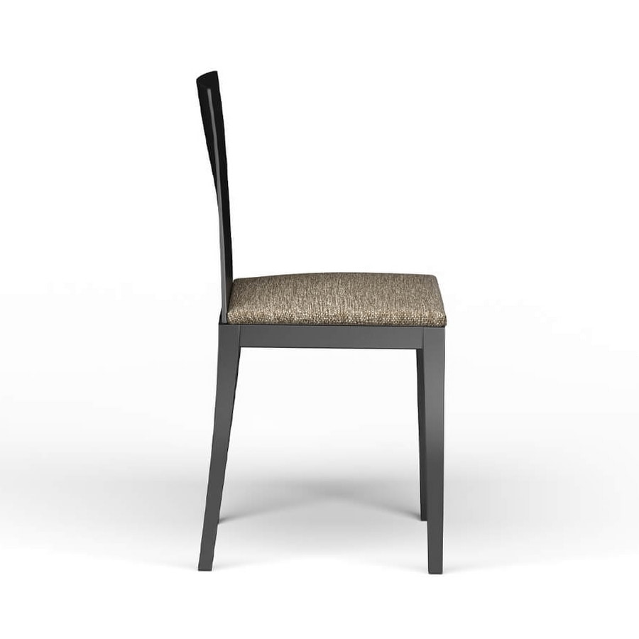 Holzstuhl mit geschwungener Rückenlehne und gepolsterter Sitzfläche