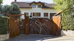 Tor mit Tür, in Edelstahl und Einlagen in Glasfusion