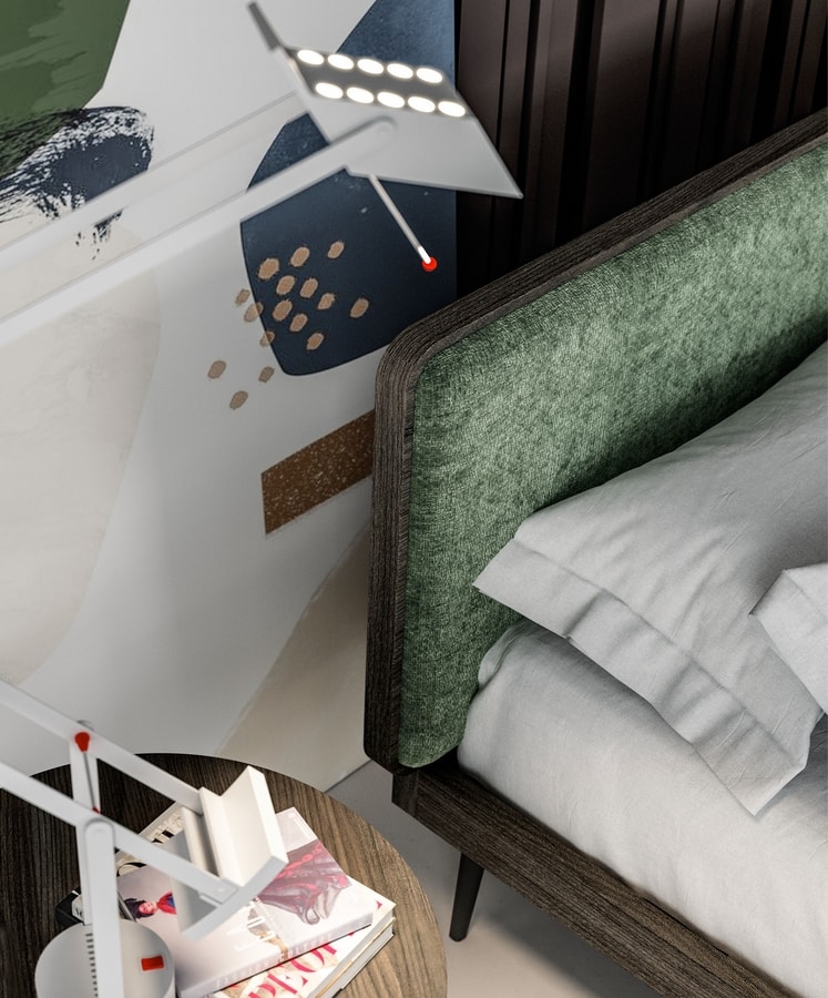 Formeller und sanfter Look, bequemer und moderner Kopf mit weichen Formen und Volumen.