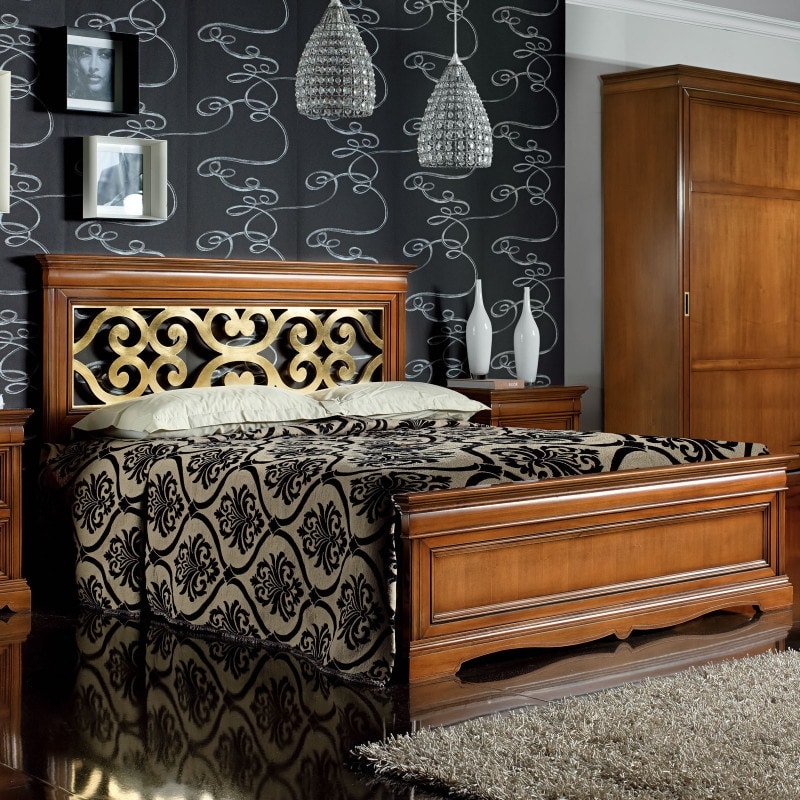 Doppelbett mit perforiertem Kopfteil und Bettrahmen
