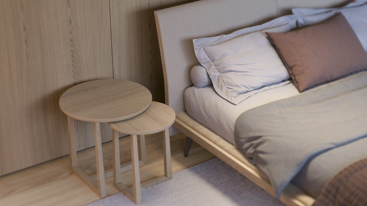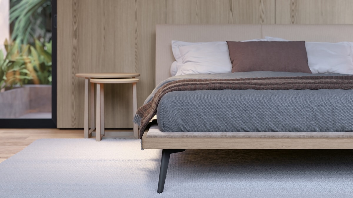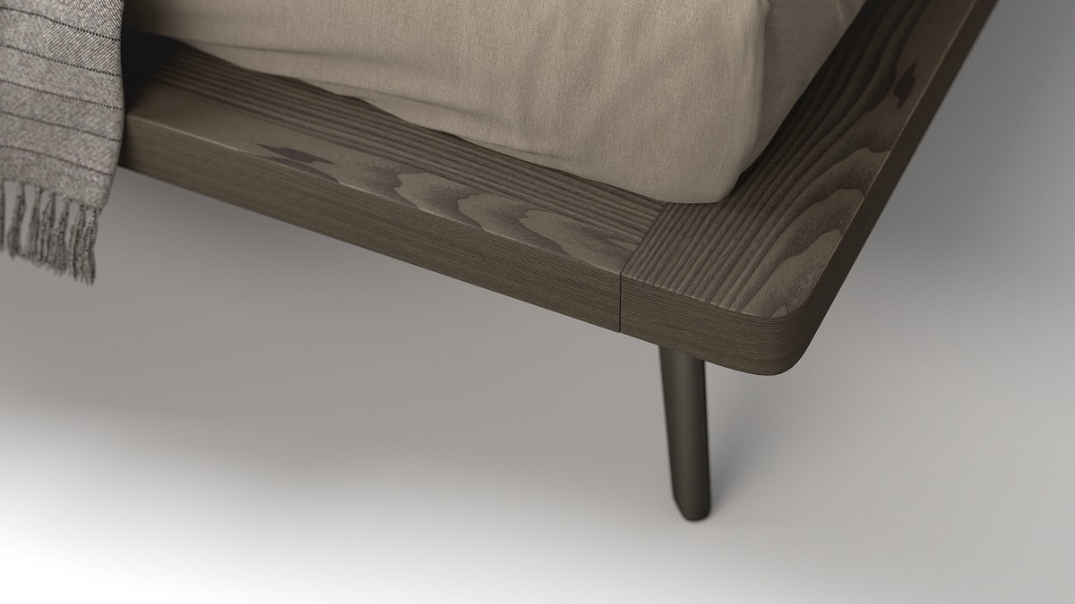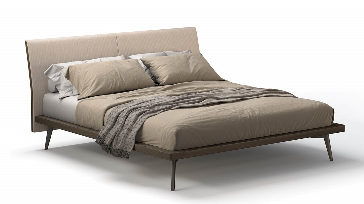 Bett mit zarten, aber klaren Linien. mit gepolstertem Kopfteil