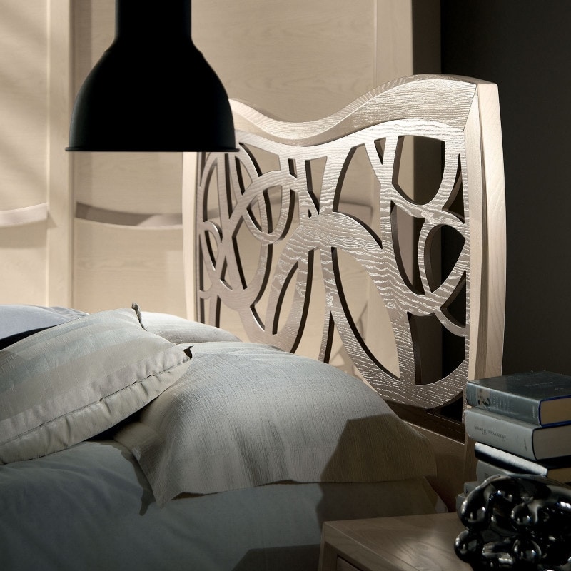 Bett mit geformtem Kopfteil und perforiertem Einsatz.