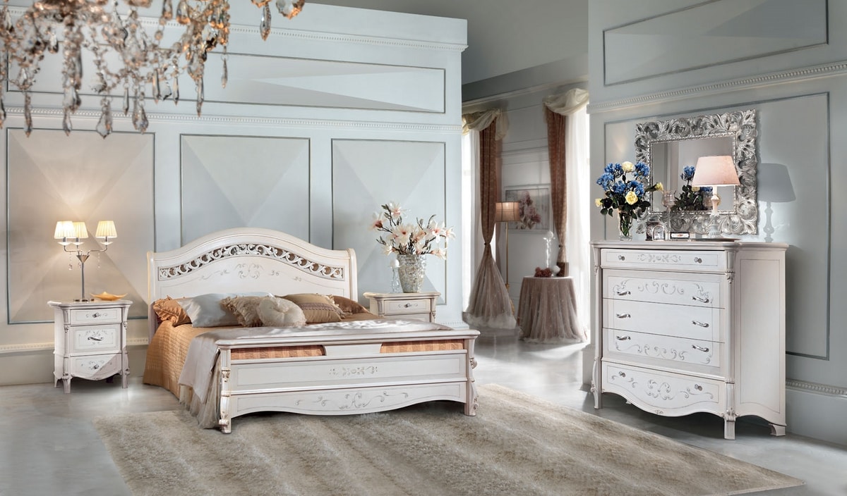 Bett mit geschnitztem Kopfteil