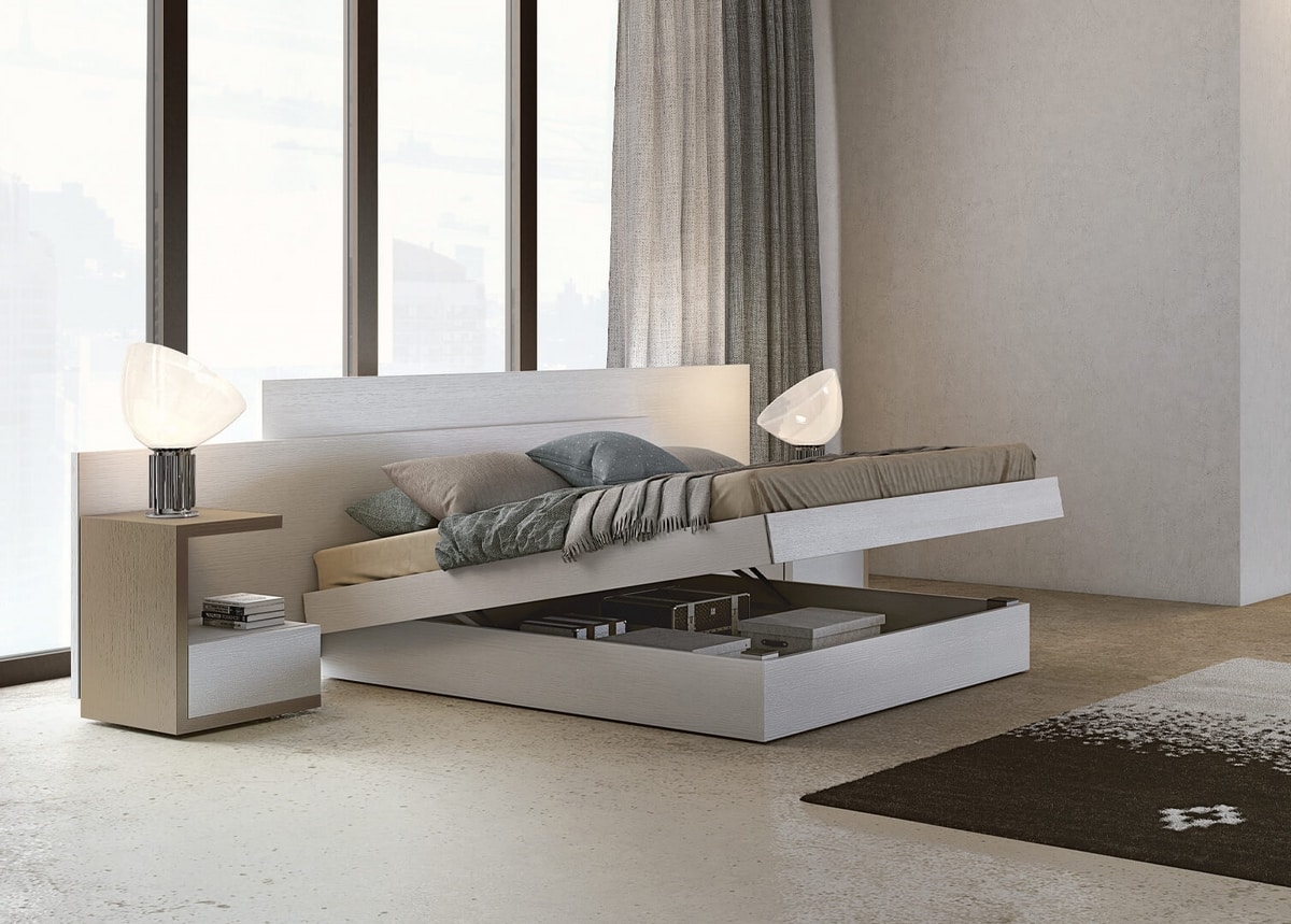 Doppelbett mit Holz- oder gepolstertem Kopfteil Sophia LM4. Gepolstertes Kopfteil, nicht abnehmbarer Stoffbezug, Leder oder Kunstleder. Das linke Paneel kann gepolstert oder in Holzoptik sein. Mögliche Kombinationen mit den verschiedenen Bettgestelltypen der Kollektion. Holzbettkomponenten in Elli-Ausführung erhältlich. Das Stütznetz ErgoAir verfügt über spezielle orthopädische Holzlatten, geräuschlose Stützen und einen Rand aus Epoxidharz zur Reduzierung magnetischer Felder. Verfügbare manuelle oder elektrische Bewegungen (nicht kompatibel mit Aufbewahrungsbox). Außenmaße der Box: 151 x 191 x 25 cm. Innenmaße: cm 146x186x22. Die Höhe der Matratze vom Boden beträgt 30 cm. LED-Leuchten, Tech Bar können am Bett angebracht werden und es können spezielle Bohrungen für Steckdosen angebracht werden. Es ist in Einzel-, Queen-Size- und kundenspezifischen Versionen erhältlich.