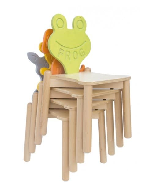 Stapelstuhl aus Buchenholz und zurück in Birkensperrholz, Sitzhöhe 31 cm, erhältlich in Naturfarbe oder farbig.