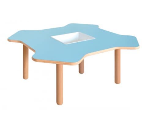 Holztisch in der Form von Helix, mit zentralen Speicher, ideal für Schulen und Kindergärten.