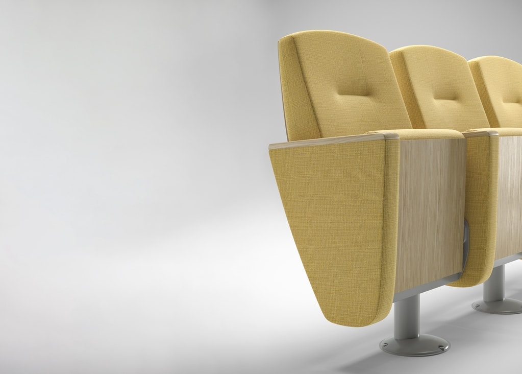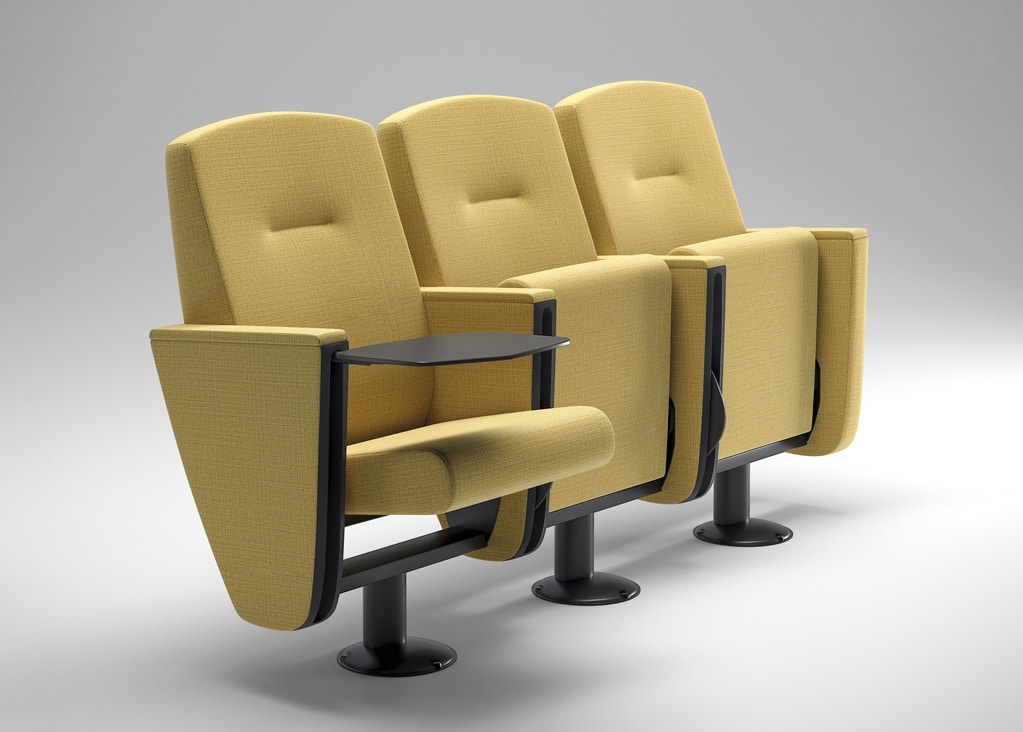 Optionen: Sitz mit Mikrofedern, abnehmbare Armlehne, großes Antipanik-Schreibbrett (auch für Linkshänder erhältlich) und Antipanik-Tisch hinter der Rückenlehne.