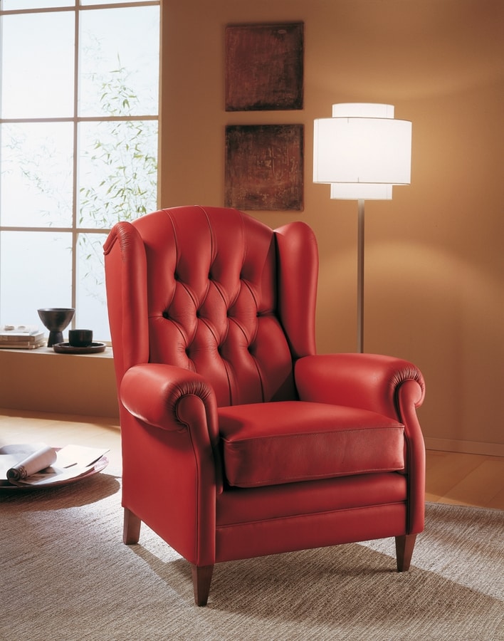 Klassischer Luxussessel mit Lederbezug und Capitonné-Verarbeitung. Bequemer Bergère-Sessel, der von einem massiven Pappelholzrahmen getragen wird. Verarbeitung auf höchstem handwerklichem Niveau. Polsterung in Leder oder Stoff. Erhältlich in einer großen Auswahl an Stoffen und Ledern. Maßgeschneidert verfügbar.