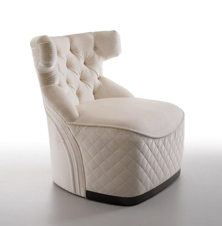 Der Sessel Dorotea repräsentiert die zeitgemäße Neuinterpretation traditioneller Manufakturen. Es gibt die Capitonnè-Verarbeitung auf der Rückenlehne, die Steppung auf dem vorderen Teil des Sitzes und die besondere Verarbeitung auf der Rückseite. Darüber hinaus macht die verchromte Metallverzierung auf der Basis diesen Sessel zu einem echten Unikat. Bequem dank der Verwendung von Federn und elastischen Gurten. Die feste Polsterung ist nicht abnehmbar.