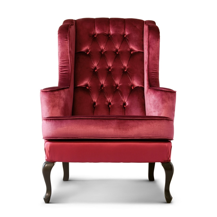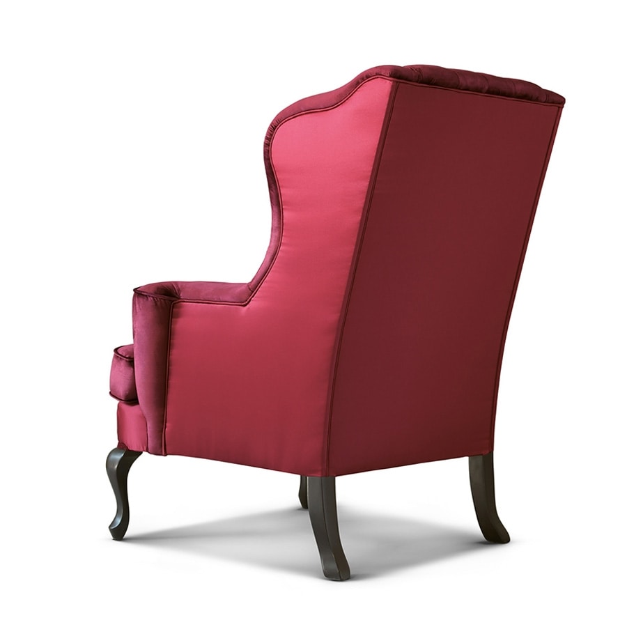 Der Rahmen aus massiver Buche ist mit einem dunkelbraunen Lack gefärbt, während die Polsterung aus rein italienischem Samt besteht.