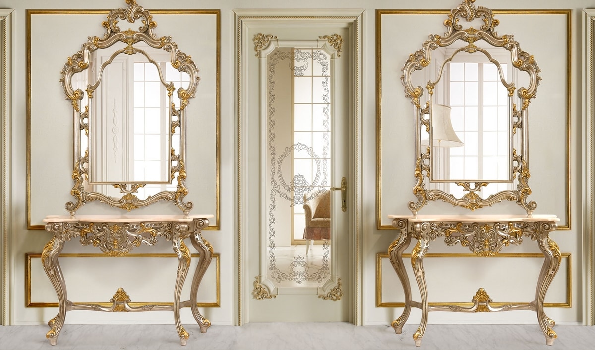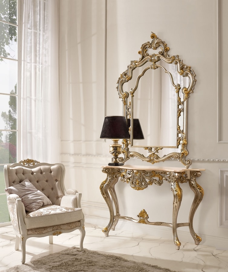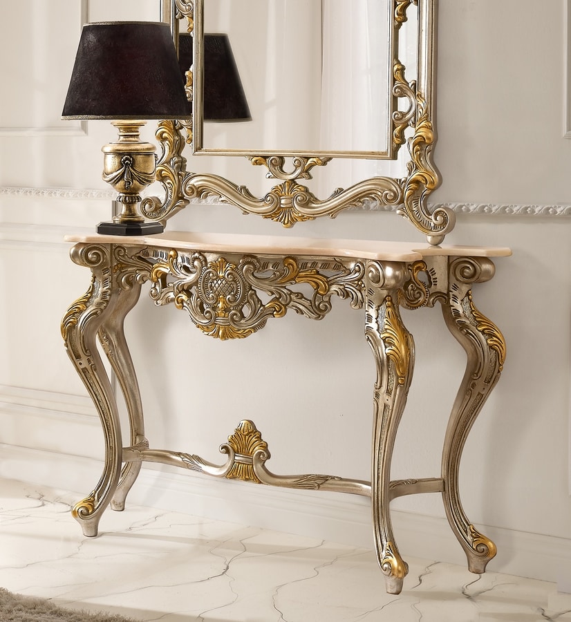 Geschnitzte Konsole mit portugiesischer Marmorplatte.
