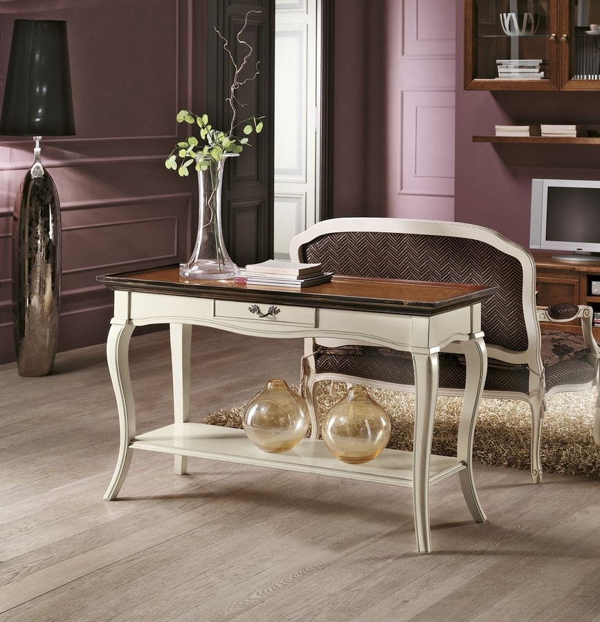 Konsole mit 1 Schublade. Beine im Stil des 18. Jahrhunderts. Lackiertes Finish. Rechteckige Oberseite aus Holz.
