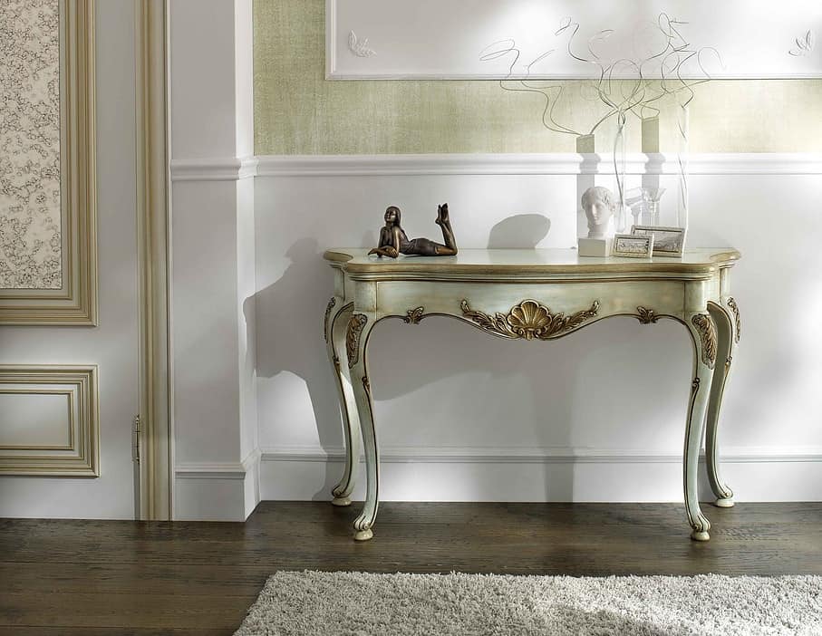 Pisani Die Konsole ist reich an Kunst und Tradition wiederholt den Stil 700 mit sorgfältigen Schnitzereien und auf Anfrage mit Gold / Silber Blatt.