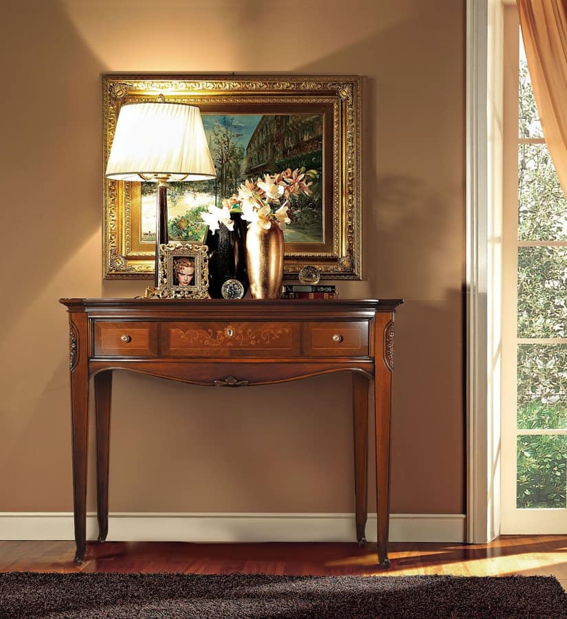 Konsole aus Holz mit 3 Schubladen für Eingang und Wohnzimmer. Luxus klassischen Konsolen.
