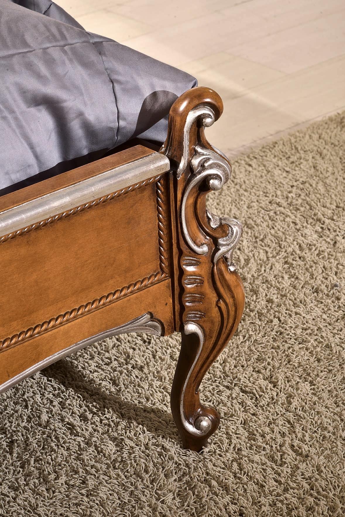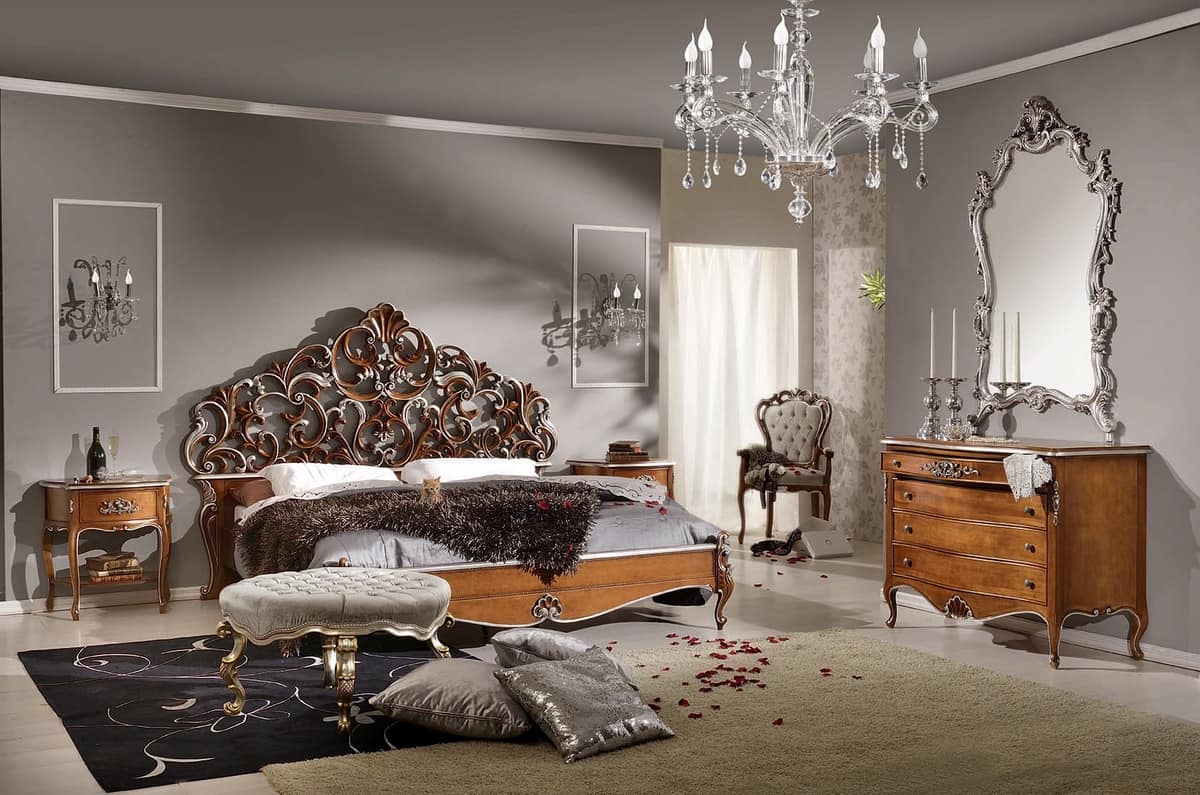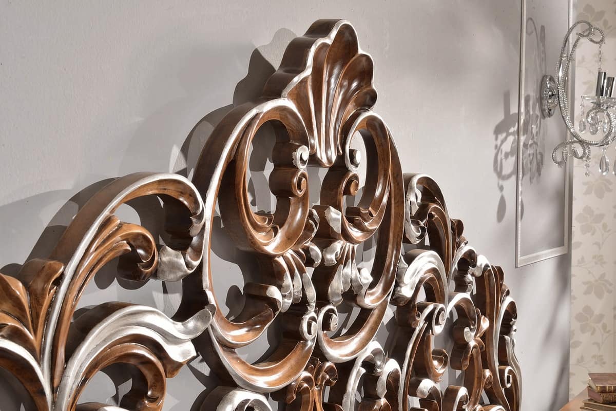 Klassisches Doppelbett mit geschnitztem Kopfteil