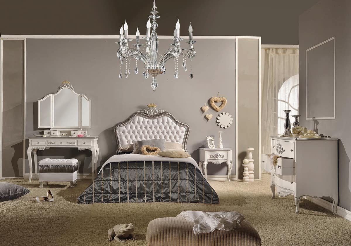 Einzelbett lackiert mit silberner Blattveredelung