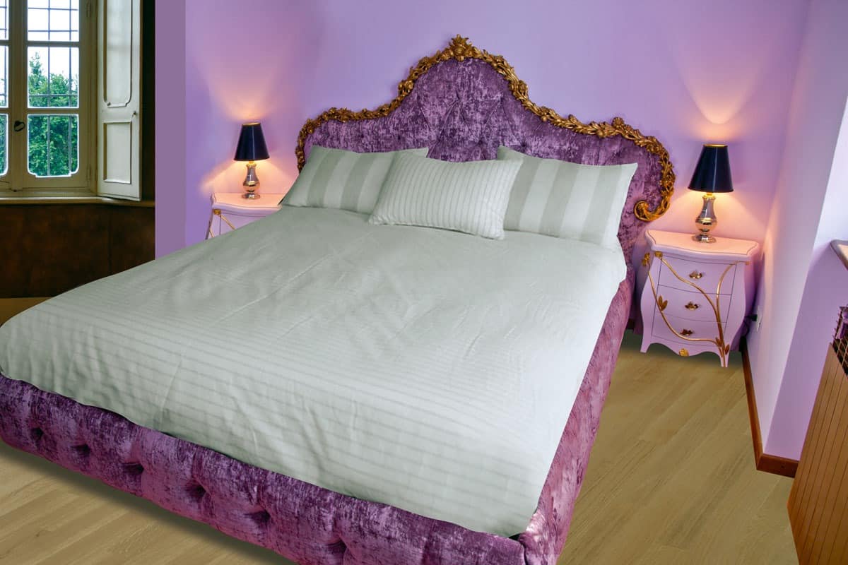 Mit Kopfteil, Fußteil und Kopfteil in gesteppten Samt Bett