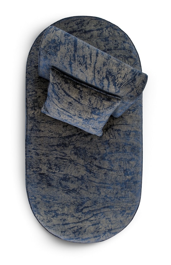 Die elegante ovale Form verbindet den taktilen Reichtum der Polsterung und bietet eine harmonische Balance zwischen Komfort und Stil. Der kontrastierende Rand umreißt die Basis mit einem raffinierten, von Vintage inspirierten Akzent.