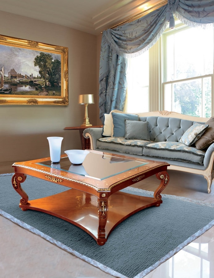 Klassischer Couchtisch mit Glasplatte