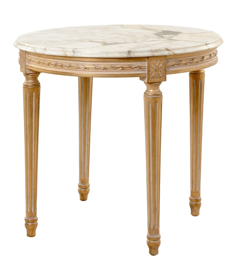 Geschnitzter Beistelltisch, verziert mit Calacatta Oro-Marmor