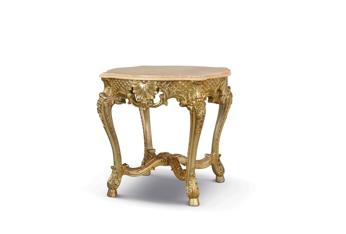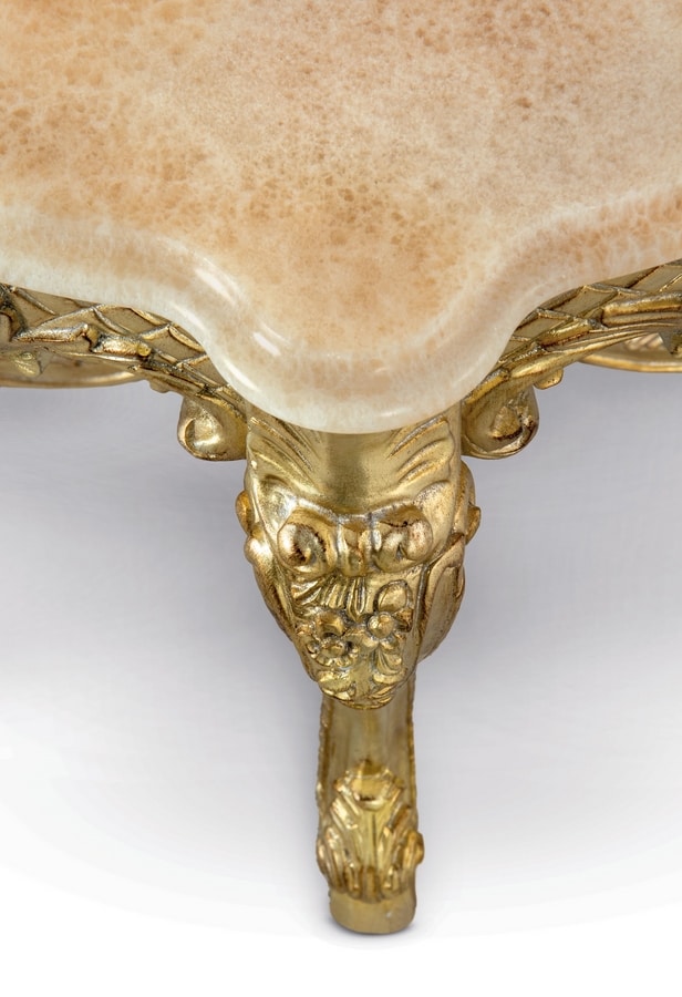 Beistelltisch mit Marmorplatte Honey Onyx, geschnitzter Sockel mit Blatt-Finish Silver Gold.