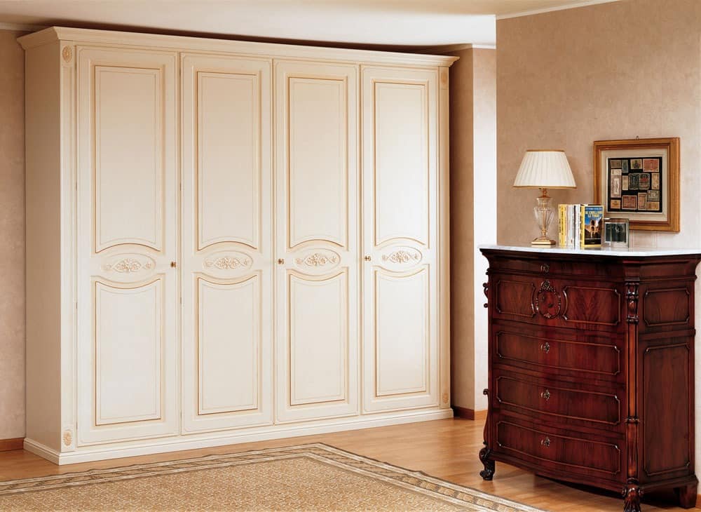 Luxus klassische Garderobe mit vier Türen für Schlafzimmer. Holz Garderobe für zu Hause oder Luxushotel.
