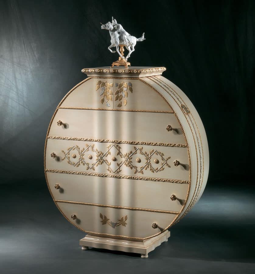 Klassischer Luxus Kommode mit Blattgold Oberflächen. Geeignet für Schlafzimmer, die den klassischen Stil widerspiegeln.