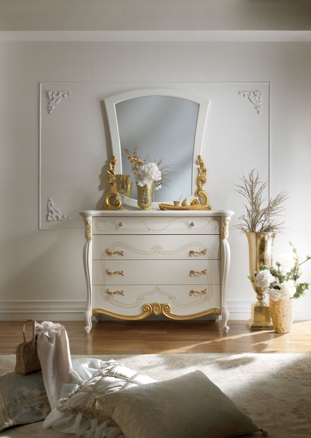 Klassische Kommode aus Holz mit dekorativen Blattgolddetails.