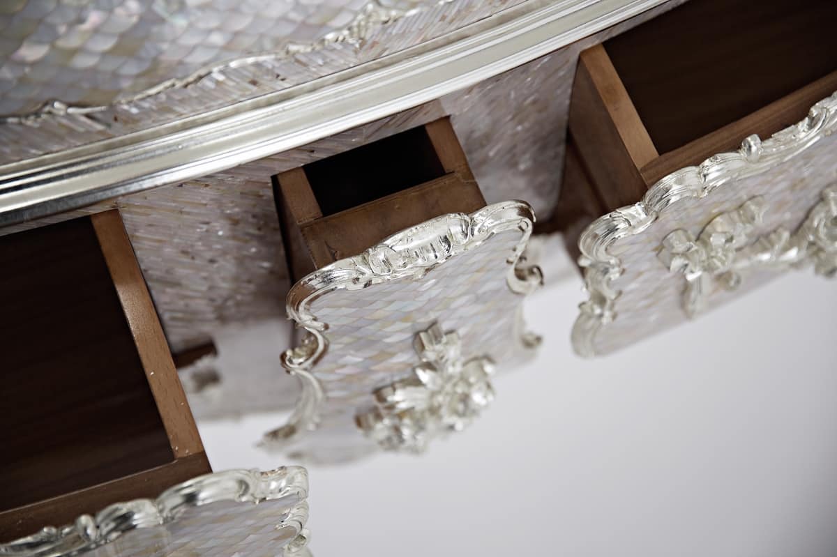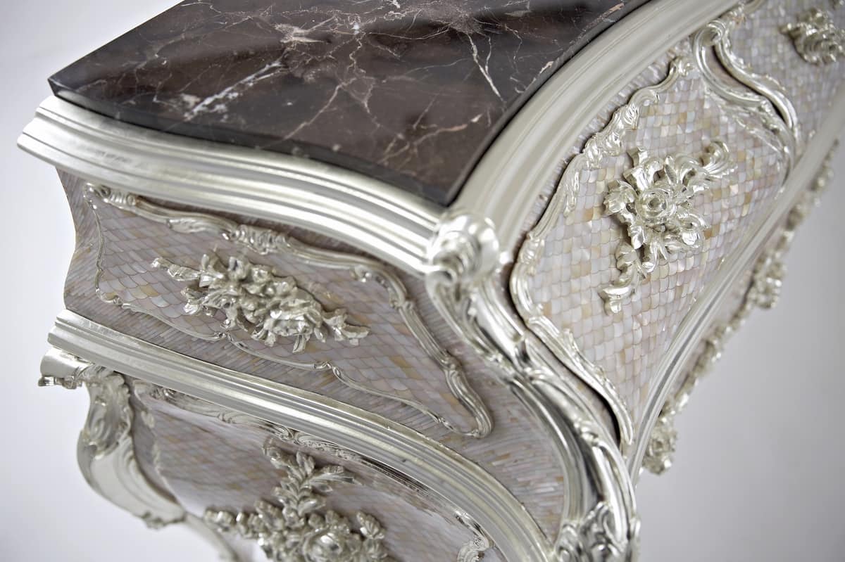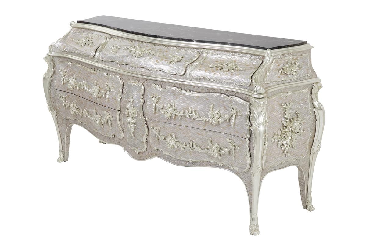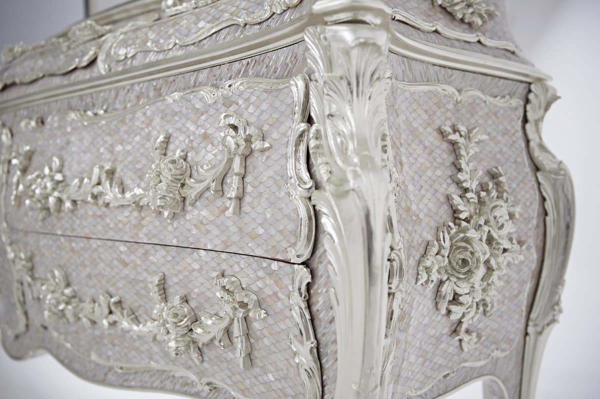 Immer auf Eleganz zielen, eine feste Eigenschaft für alle seine Produkte, stellt Luxury Lab eine Kommode vor, die eine hervorragende Ausstrahlung hat, zweifellos dank der Perlmutt.
