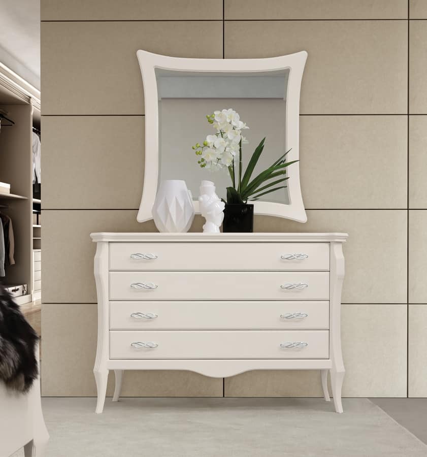 Weiß lackierte Kommode mit zeitgenössischem Design. Weiche, glamouröse Linien, für Ästhetik in perfekter Balance zwischen Vergangenheit und Gegenwart. Maßgeschneidert und mit verschiedenen Ausführungen.