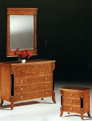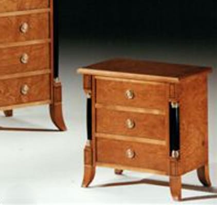 Nachttisch im Empirestil aus Eschenholz. Ausgestattet mit 3 Schubladen