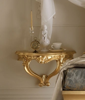 Nachttischkonsole, alle in Blattgoldfarbe.