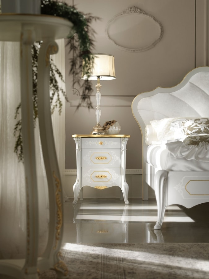 Nachttisch aus lackiertem Holz mit Details aus Blattgold oder Silber.