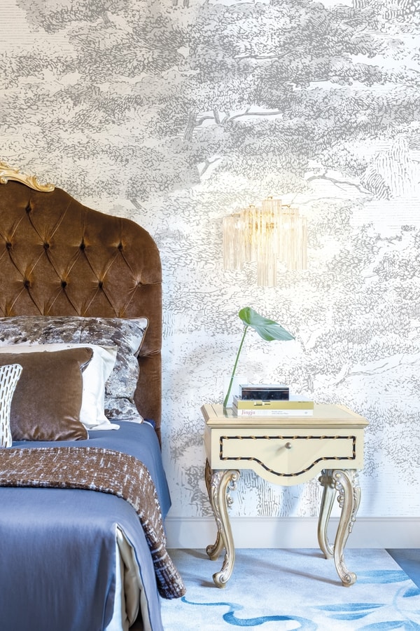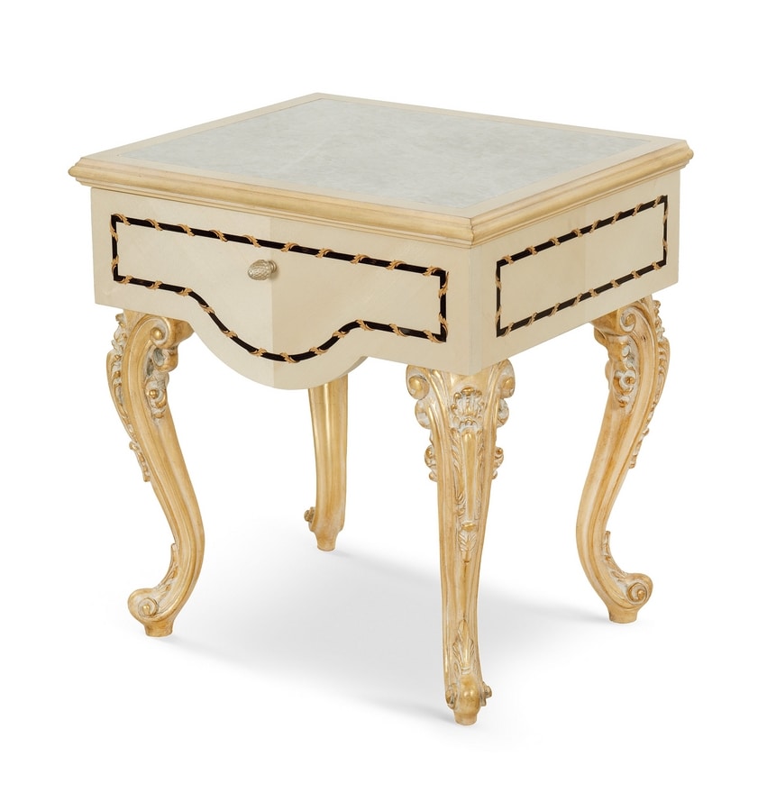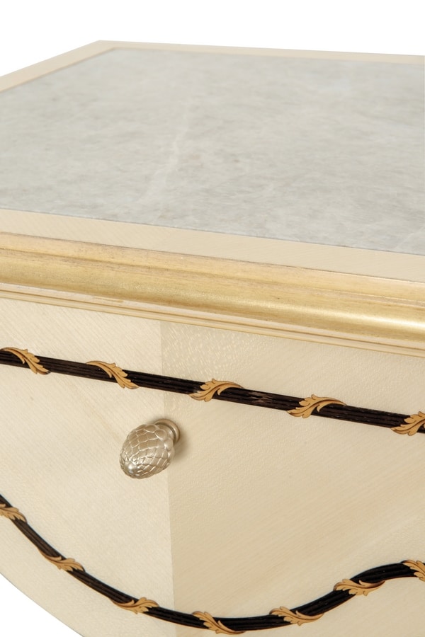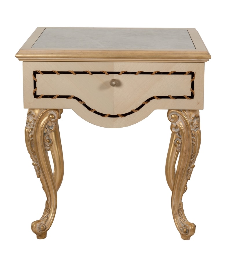 Feiner Nachttisch mit einer Ahornstruktur, die durch exquisite Inlays in Carolina Pine und schattiertem Pearwood verbessert wird. Die fein geschnitzten Beine harmonieren sich mit dem hoch entwickelten Och -Finish -Blatt mit baiserischer weißer Patina -hüllt das gesamte Stück zutreffend. Der obere, nahtlos Einschub wird aus Taj Mahal Marmor hergestellt, der für seine natürlichen Glanz und delikate chromatische Nuancen geschätzt wird.