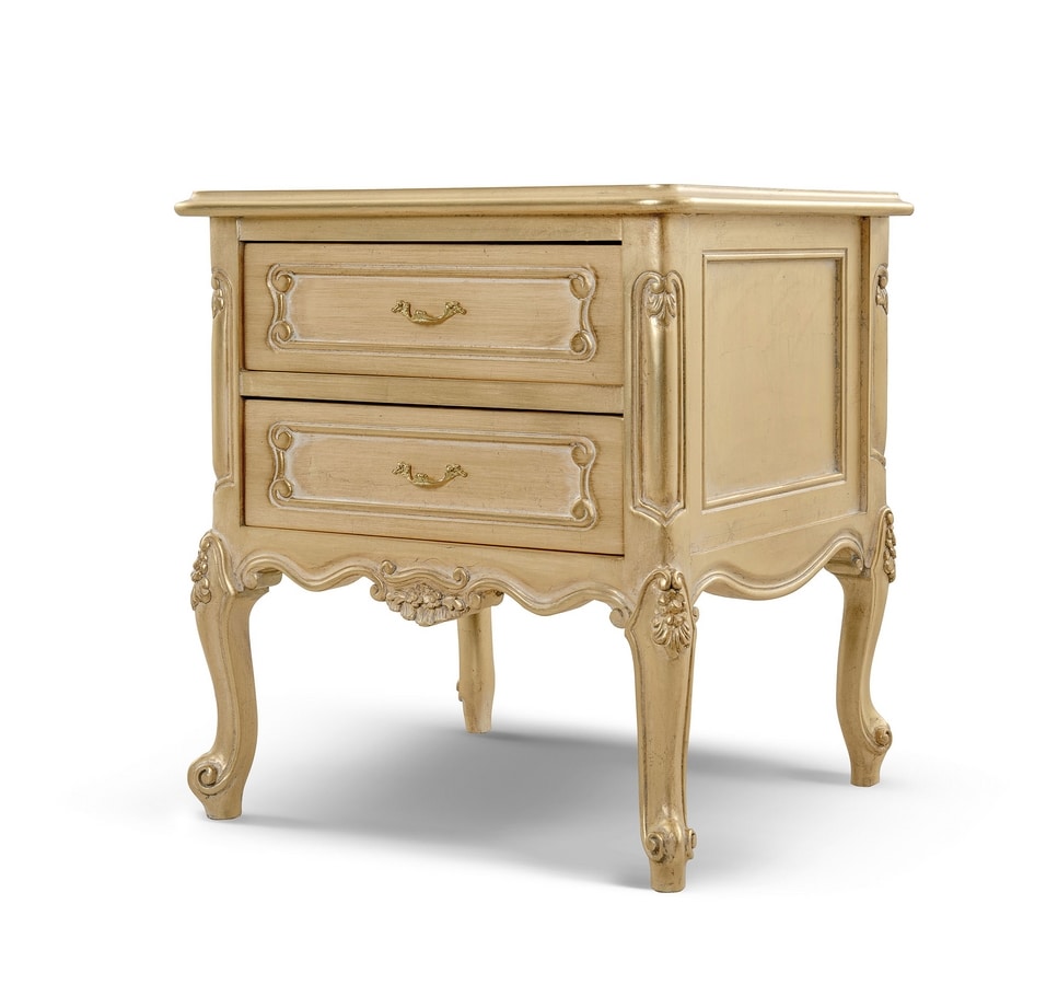 Nachttisch mit Holzplatte, Finish OCH-Blattgold, patiniertes weißes Baiser (Oro Chic).